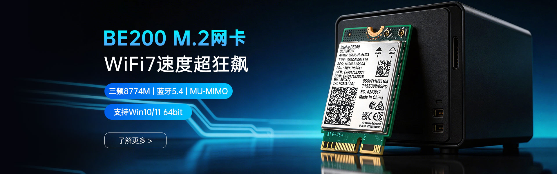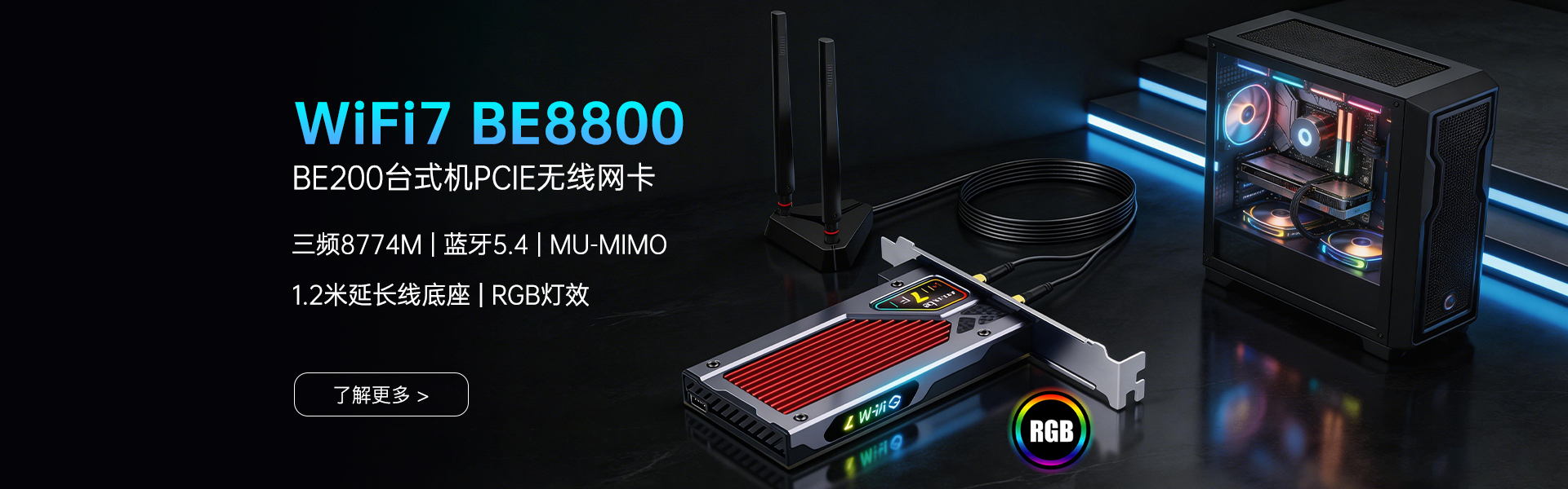 BE200NGW是目前最新的无线网卡芯片,支持2.4G/5G/6GHz三频段信号通道,可自由选择!蓝牙5.4是目前最高的蓝牙版本,可稳定连接任何蓝牙设备,不掉线!